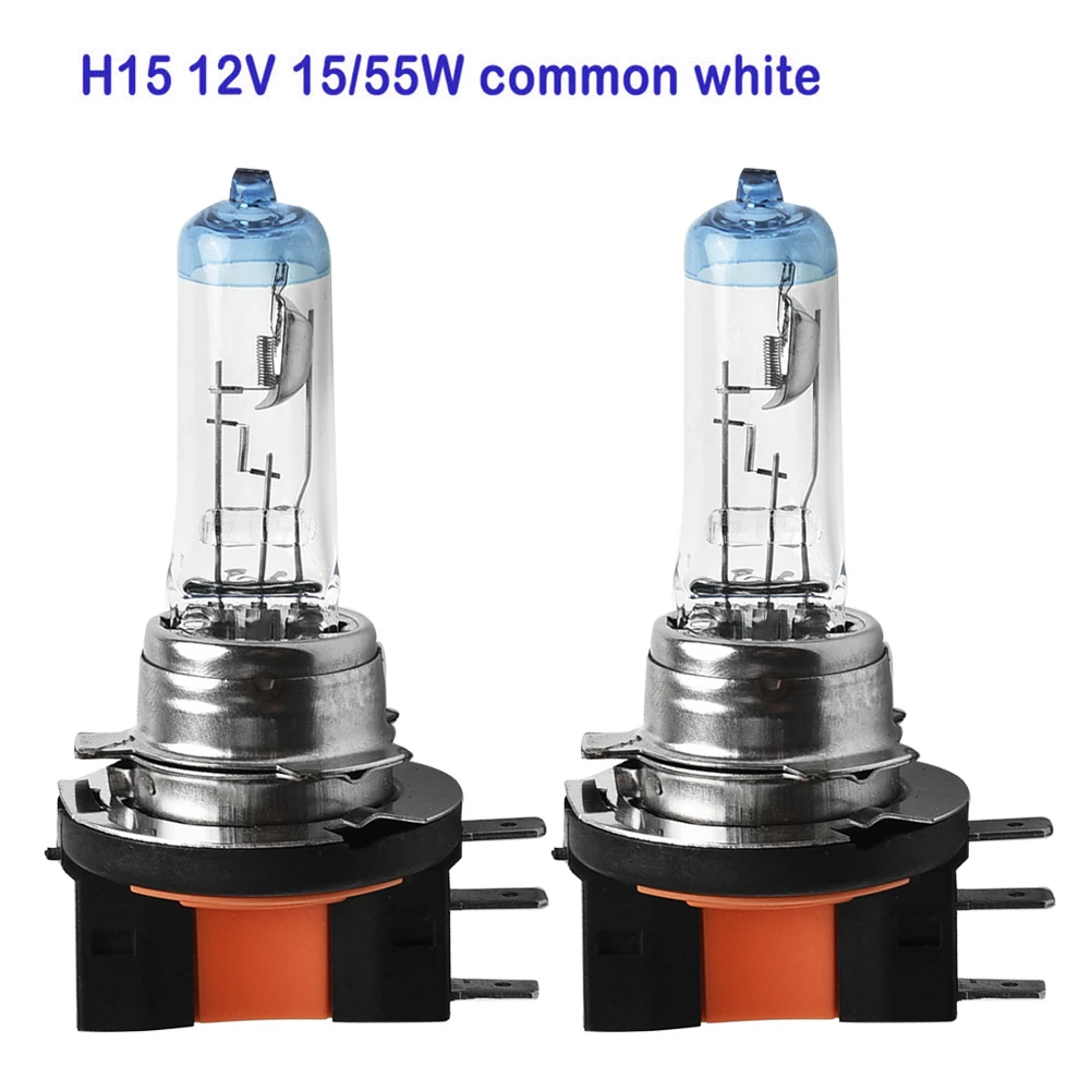 12V Halogen Bulbs 55W Transparent DRL H15 White 2pcs Replacement Parts