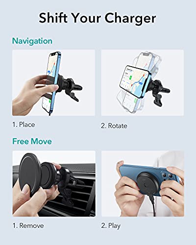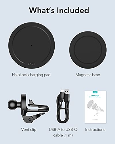 ESR HaloLock Caricabatterie Wireless Shift per Auto Compatibile con MagSafe, 2 Modalità di ricarica, Pad di ricarica veloce rimovibile, iPhone 14/14 Plus/14 Pro/14 Pro Max e iPhone serie 13/12