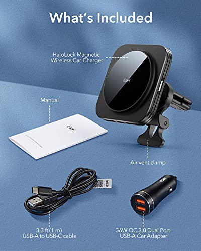 ESR HaloLock Caricatore Wireless Magnetico per Auto da 36W QC 3.0 Compatibile con iPhone 14/14 Plus/14 PRO Max e iPhone Serie 13/12/MagSafe, Supporto per la Bocchetta dell'Aria