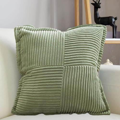 Haloppe Federa per cuscino natalizia in velluto a coste con cerniera nascosta, lavabile in lavatrice, antipolvere, antimacchia, decorativa, quadrata, a righe, verde chiaro