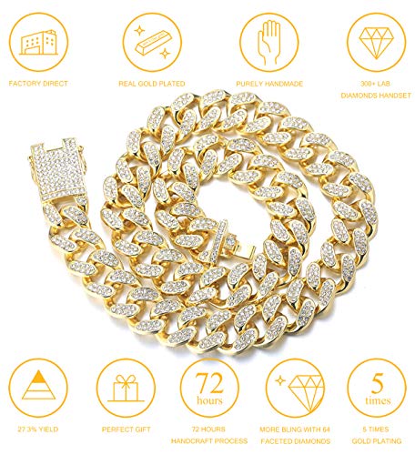 HALUKAKAH Catena In Oro Iced Out,20MM Catena Cubana da Uomo Miami Placcato in Oro 18 Carati Collana Girocollo 75cm,Cz Completa Diamante Set a Mano,Regalo Per Lui