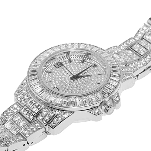 HALUKAKAH Diamanti Orologio Oro, Uomo Placcato Oro Bianco Platino 38MM Largo Tondo Componi Quarzo Cinturino 22cm, con Scatola Regalo