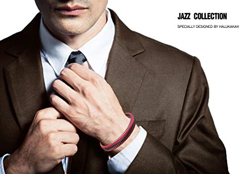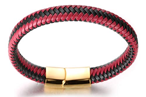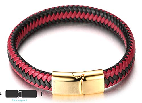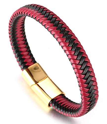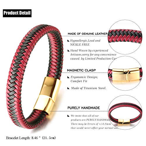 HALUKAKAH ● Jazz ● Bracciale Uomo in Vera Pelle Cuoio Party Rosso Chiusura Magnetica Titanio Acciaio 8.46"(21.5cm) con Pacco Regalo Gratuita