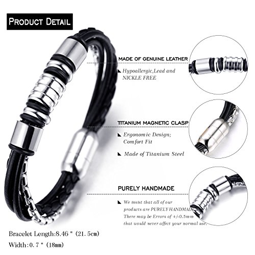 HALUKAKAH ● Onore ● Bracciale Uomo in Vera Pelle Cuoio Fatto a Mano Chiusura Magnetica in Titanio Acciaio Oro/Argento 8.46"(21.5cm) con Pacco Regalo Gratuita