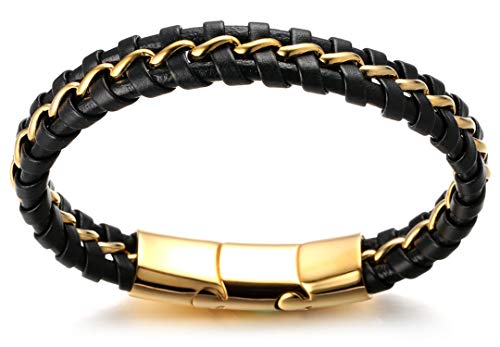 HALUKAKAH Plus ● Onore ● Bracciale Uomo in Vera Pelle Cuoio Catena in Titanio Acciaio Chiusura Magnetica Taglia Regolabile 8.46"-9"(21.5-23cm) con Pacco Regalo Gratuita