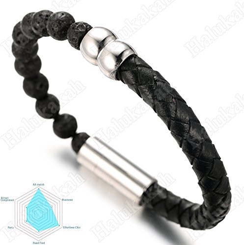 HALUKAKAH ● Saluto Il Terra ● Bracciale Uomo in Vera Pelle Cuoio con Perline in Lava Rock, Intelligente Chiusura Magnetica, 8.46"(21.5cm) con Pacco Regalo Gratuita