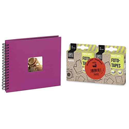 Hama Album spiralato FineArt, 36x32 cm, 50 Pagine, Rosa & 007103 - Nastro adesivo per foto, Trasparente, 1000 pezzi (2 Confezioni da 500 Pezzi)