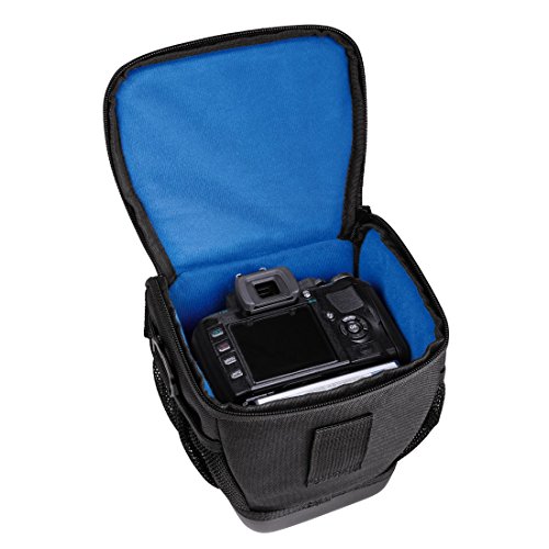 Borsa per fotocamera per riporre e proteggere una fotocamera SLR dotata di un obiettivo da sporco e graffi.