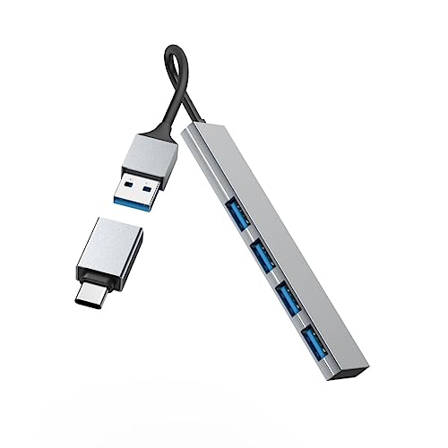 Hama Hub USB 4 porte (porta USB-A e USB-C 4x USB-A per mouse, tastiera, disco rigido esterno, chiavetta USB, ecc., alloggiamento in alluminio, ultra sottile, adattatore USB per ufficio, casa ufficio)