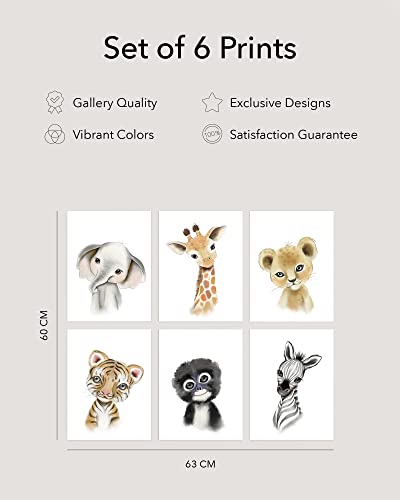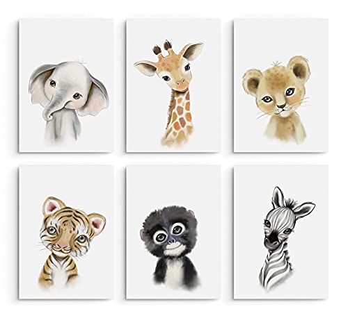 Hambient Stampe da Parete per Quadri Camera da Letto Bambini, Cameretta Bimbi - Decorazioni Nascita Bambino, Bambina, Bimbo (21 x 30 cm - Senza Cornici, Animali Africa Simpatici)