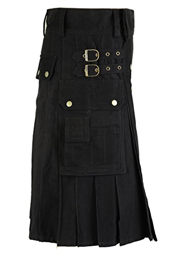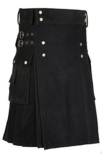 Hamilton Kilts Uomo Scozzese Cotone Kilt Gonnellino Deluxe Tartan 8 Cortile - Nero, W40