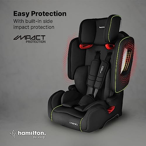 Hamilton by Yoop Cabrio Premium Seggiolino Auto Pieghevole - Per Bambini Da 9 Mesi A 12 Anni - ISOFIX - 51x42x74cm - 1° seggiolino auto pieghevole al mondo - Neon Giallo