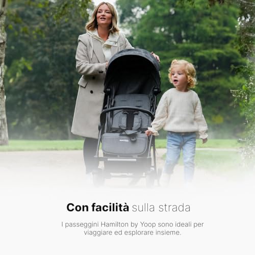 Robusto, leggero e compatto: i robusti passeggini Hamilton by Yoop sono progettati esclusivamente per il comfort di genitori e figli. Oltre al telaio in alluminio incredibilmente leggero ma molto robusto (7,9 kg), al sistema Magicfold di facile utilizzo e alle varie parti regolabili, questo passeggino maneggevole è facile da piegare. In questo modo è possibile portare il passeggino ovunque.