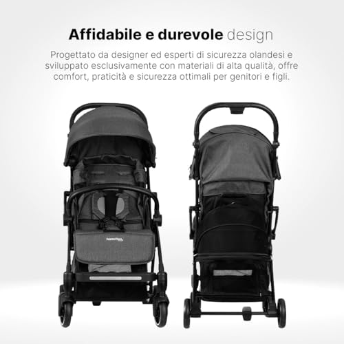 Hamilton by Yoop XL Passeggino - Leggero, regolabile e maneggevole - Passeggino premium con MagicFold - Ampio vano bagagli - Maniglia regolabile - Grigio chiaro mélange