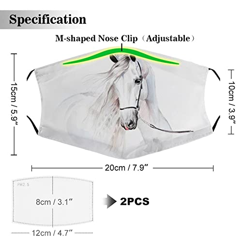 Haminaya Mascherina Cavallo Bianco Maschera Viso Antipolvere Riutilizzabile con 2 Filtri per Adulto Uomo Donna 1 PCS