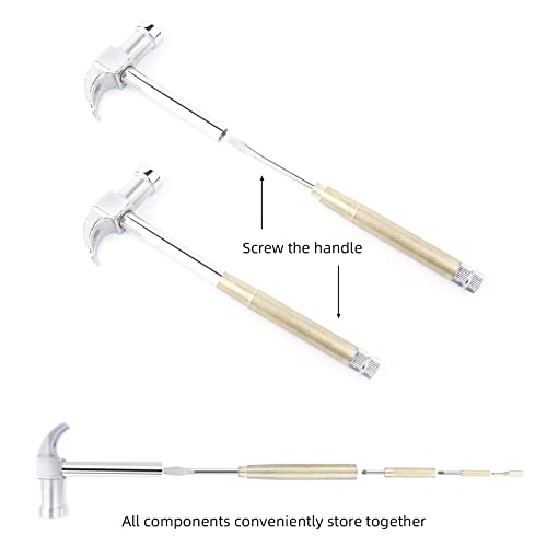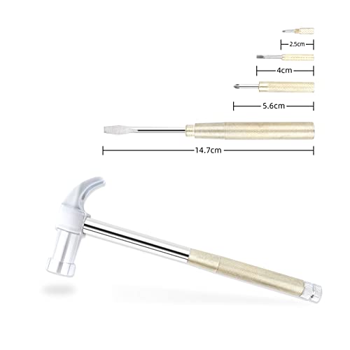 Strumenti inclusi: set di strumenti multifunzionali tra cui martello e cacciavite in metallo: cacciavite a testa piatta / fessurata x 2, cacciavite Phillips x 2, estrattore di chiodi x1 e martello artiglio x 1, martello artiglio costituito da una testa di martello in metallo e una maniglia, facile da imballare e riporre.