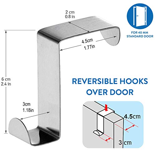 Hamosky Appendiabiti da porta in acciaio inox spazzolato resistente, reversibile, piccolo, 2 x 4 x 6 cm