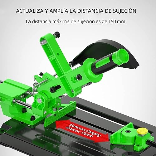 【Alta precisione】 Il pratico supporto per smerigliatrice angolare Hancaner ha una dimensione di 340 x 310 x 250 mm, l'angolo di serraggio massimo può raggiungere i 45 gradi, il braccio fisso può essere regolato per adattarsi a più smerigliatrici angolari.