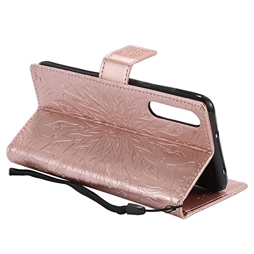 Hancda Cover per Huawei P20 PRO [Non per P20], Custodia Cover Flip Case Portafoglio Magnetica Libro Pelle Protettiva con Disegni Silicone Case Antiurto per Huawei P20 PRO,Fiori Oro Rosa