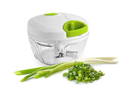 H&H Hand Chopper Tritatutto Manuale a Corda per Frutta e Verdura, Bianco/Verde Lime