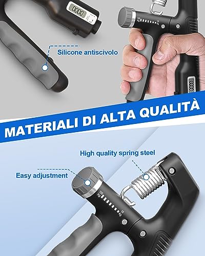 Allenamento Avambraccio Hand Gripper: Allenatore intelligente con contatore per l'allenamento avambraccio: Allena la tua forza di presa con il nostro allenamento avambraccio hand gripper dotato di contatore. Realizzato in acciaio inossidabile di alta qualità, questo strumento offre una resistenza regolabile da 10 a 100 kg. Visualizza i tuoi progressi in un attimo grazie al suo contatore intelligente integrato.