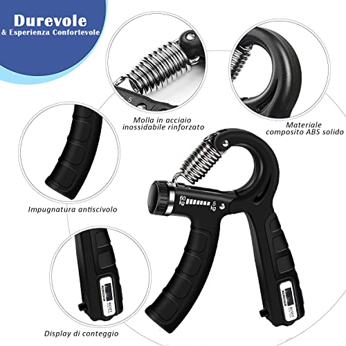 Hand Grip, Skoye Pinza Mano Contatore, 5-60 kg Strumento per l'allenamento Delle Mani Mano per l'allenamento Dell'impugnatura