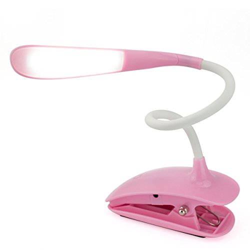 HandAcc Lampada da Tavolo a LED Clip con Collo Flessibile, Lampada Portatile Ricaricabile da Scrivania e Lettura, Protezione degli Occhi, 3 Livelli di Luminosita' Regolabile (14 LED Bianco) Rosa