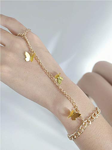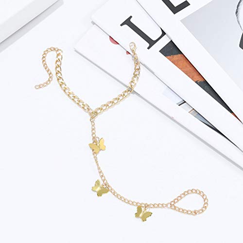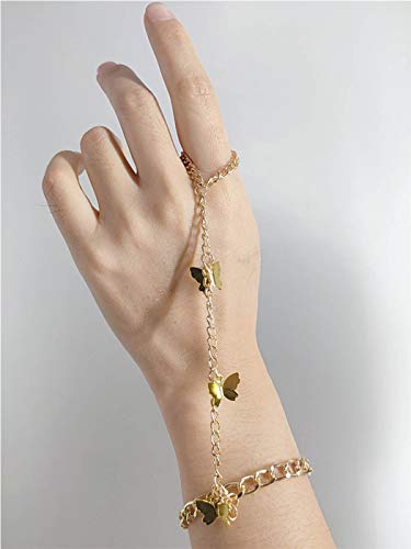 Handcess Boho Farfalla Bracciali Oro Mano Imbracatura Del Braccialetto Dito Anelli Accessori per le Donne e Ragazze
