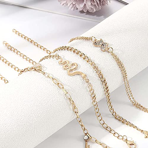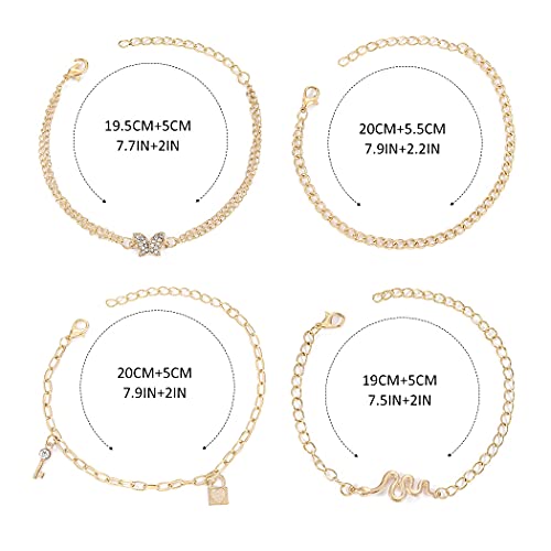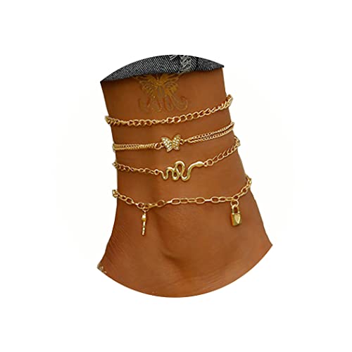 Handcess - Cavigliere a forma di serpente in oro a forma di farfalla, con chiusura a catena e chiave a forma di piede per donne e ragazze