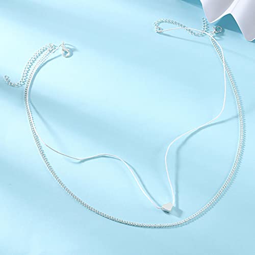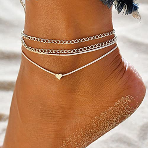 Handcess, Cavigliere a strati intrecciate color argento con ciondolo a forma di cuore, per donne e ragazze