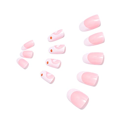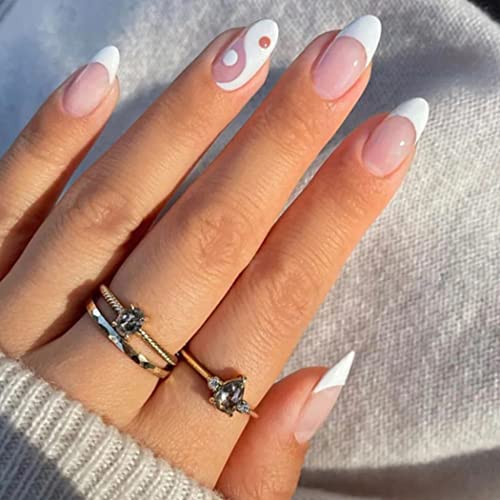 Handcess Unghie finte francesi lucide ovali corte Taichi stampa sulle unghie Unghie finte acriliche Stick sulle unghie per donne e ragazze (24 pezzi)