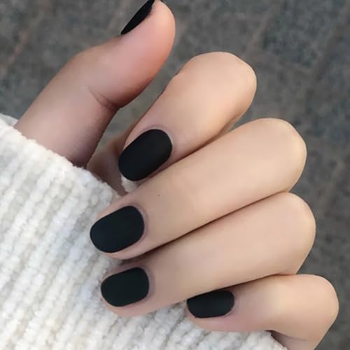 Handcess Unghie finte quadrate opache Ballerina nera Stampa su unghie Punta piena di colore puro Punte per unghie finte per donne e ragazze