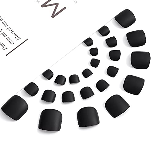 Le punte per unghie dei piedi neri includono un set da 24 pezzi di punte per unghie finte, adesivi per colla per unghie gratuiti e mini lima per unghie.È facile per specialisti di unghie professionisti o studenti di nail art, adatto per saloni di bellezza o per progettare il proprio stile e modello.