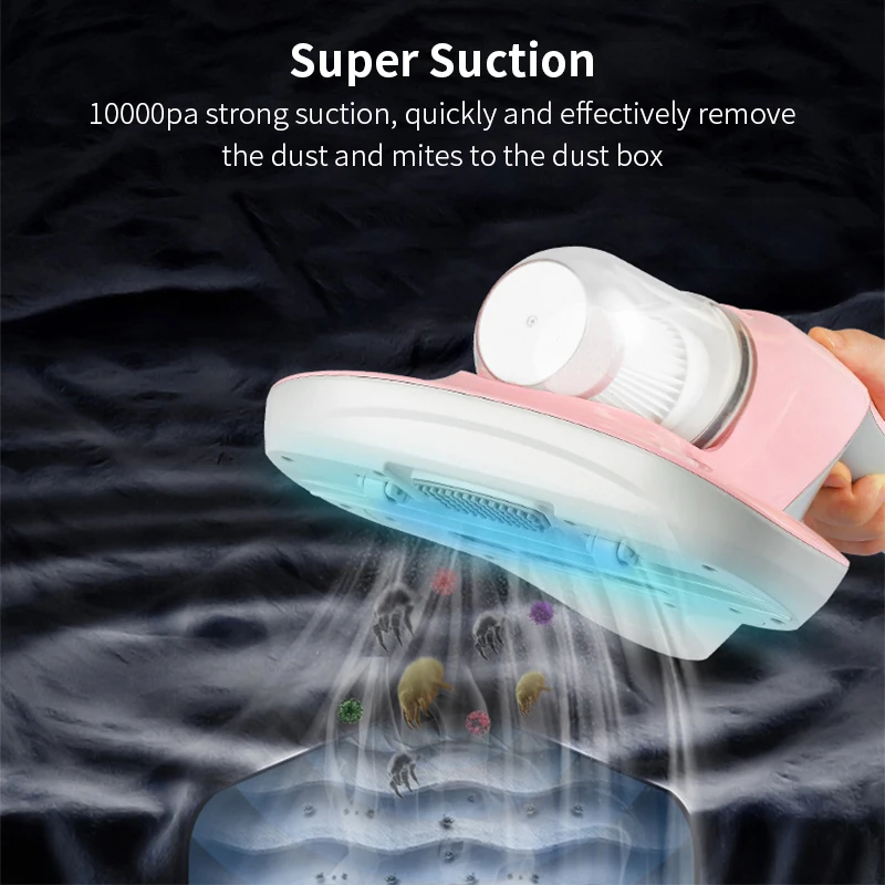 Handheld Dust Mites Vacuum Cleaner Portable Strong Suction Dust Mite UV Vacuum Cleaner 100% Mite Removal Rate Visible Dust Box