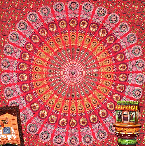 Handicrunch - Arazzo mandala pavone, decorazione da parte indiana hippie, copriletto bohemien, decorazione a mandala da camera da letto, in cotone, telo da spiaggia