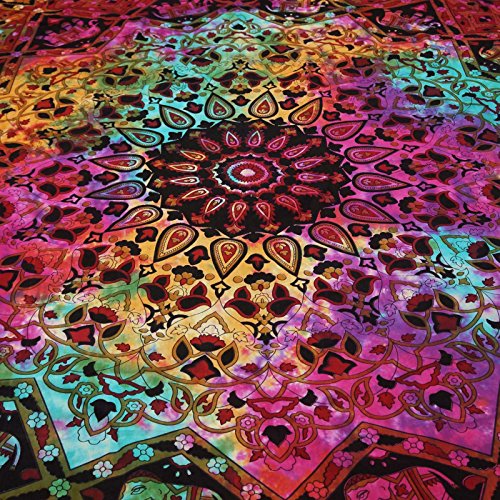 Handicrunch Indian Wall Hanging Tapestry Mandala Star Cotton Full Size Black Bedspread Throw 92 X 82 Inches