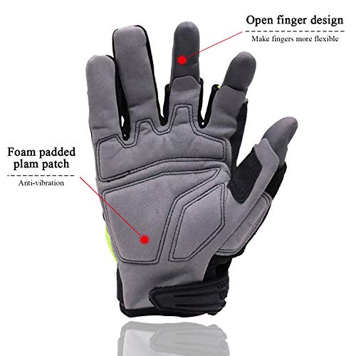 Toppa imbottita in schiuma e dorso elasticizzato traspirante in spandex fornisce alle mani un migliore supporto e comfort per tutto il giorno, offre una maggiore protezione dalle vibrazioni, pur consentendo la flessibilità.