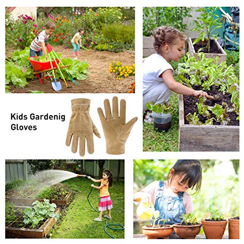 HANDLANDY Guanti da lavoro in vera pelle per bambini dai 3 agli 11 anni, guanti da giardinaggio per bambini, ragazzi e ragazze