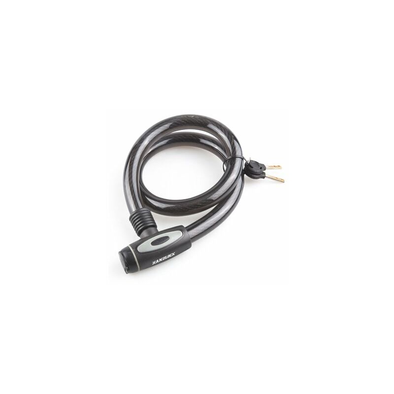 Lucchetto moto con cavo in acciaio. Include due chiavi con protezione in plastica. Esterno con rivestimento in nylon. Elevata resistenza all'ossidazione e corrosione.