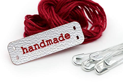 3DP Handmade Etichette Personalizzate PU Piane - Rosso-Argento MOD HMC - Etichette rettangolari Etichette Handmade da Cucire Fatto a Mano in Italiano (30 Pezzi - Testo Personalizzato)