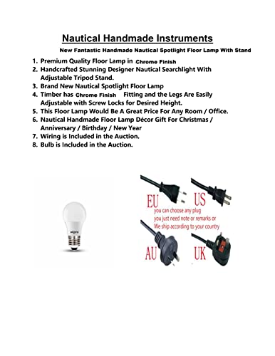 Handmade Nautical Chrome Spot Luce Lampada da Terra con Treppiede in Legno Marine Studio Searchlight Casa Decorativo E 27 Lampadina Lampada