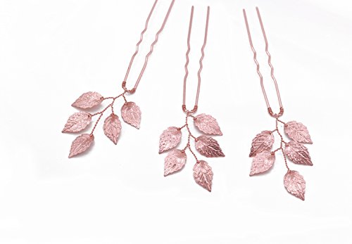 Handmadejewelrylady Forcine per capelli vintage da sposa in oro rosa (confezione da 3)