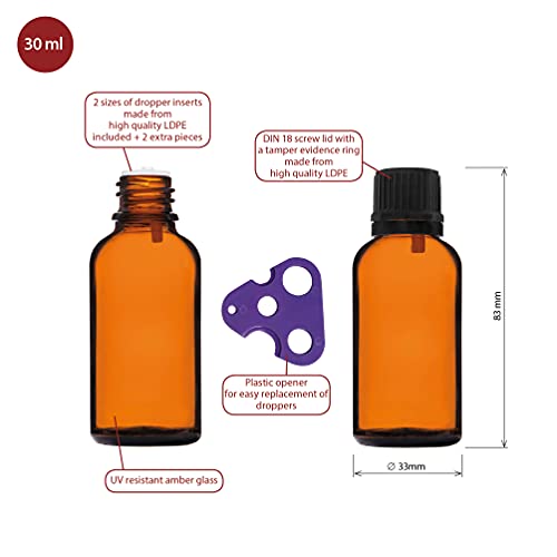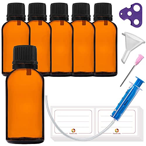 HandsUnity 30ml-6pz di Flacone con Contagocce - Piccolo Flacone di Vetro Ambrato da Farmacia con Tappo Nero Contagocce in Vetro Marrone set Compresi 18 Accessori ausiliari