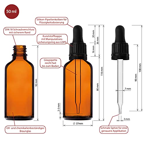 Facile da dosare: la robusta bottiglia di vetro ha un coperchio con pipetta di vetro integrata con una punta stretta per un dosaggio preciso. La pipetta è stampata con una scala di facile lettura in modo che le quantità fino a 1 ml possano essere misurate direttamente.