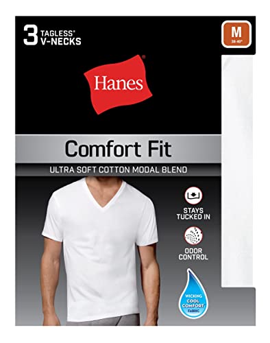 Hanes Men's Comfort Flex Fit White V-Neck 3 Pack, Small