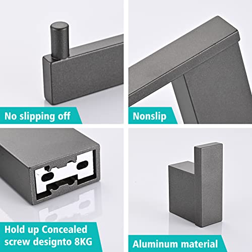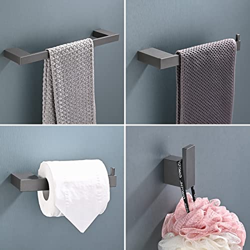 HANFU Porta Asciugamani, Accessori Bagno Set di 5, Alluminio Portasciugamani Bagno da 40cm, Porta Carta Igienica, Ganci per Accappatoio, Set Bagno Accessori Completo da Montaggio a Parete, Grigio