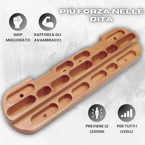 ♂️ . L'Hangboard da arrampicata ha diversi tipi di impugnature e bordi in modo da poter lavorare e migliorare la tecnica di arrampicata. Inoltre, grazie al design ergonomico, eviti lesioni.