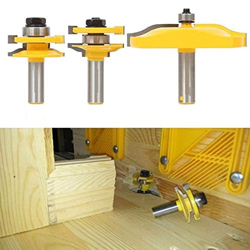 HangboughtEU Set di punte per fresa per scanalatura maschio/femmina, 3 pezzi, codolo da 12,7 mm, pannello a rilievo, ante di armadi, binario ad arco inflesso e montanti, strumenti da taglio a scalpello per lavorazione del legno