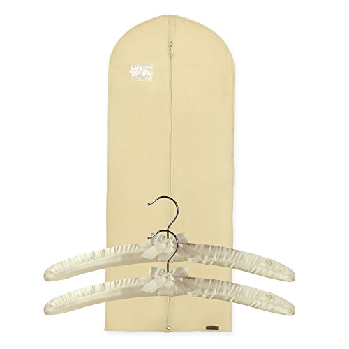 HANGERWORLD Custodia Abiti 152 cm Bianco Avorio Traspirante e 2 Grucce 43cm Imbottite in Satin Bianco Avorio