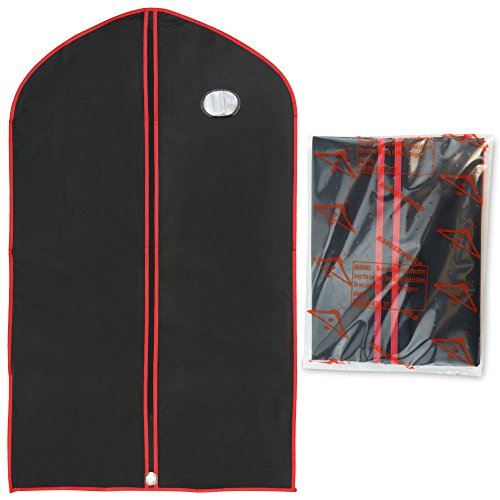HANGERWORLD- 3 Custodie per abiti in vinile nero con finiture rosse - 110 cm